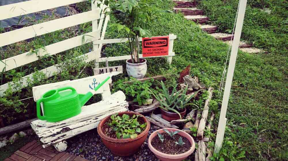 自作小屋と、その横に作ったグリーンスペースで楽しんでいます。