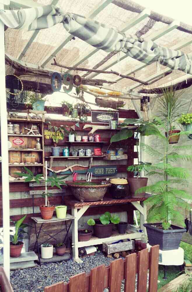 自作小屋と、その横に作ったグリーンスペースで楽しんでいます。