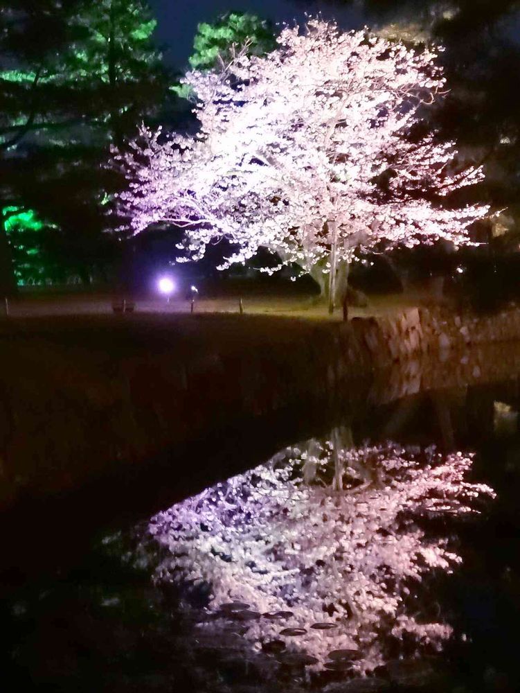 照らされた桜も綺麗やし、水面に映った桜も綺麗✨