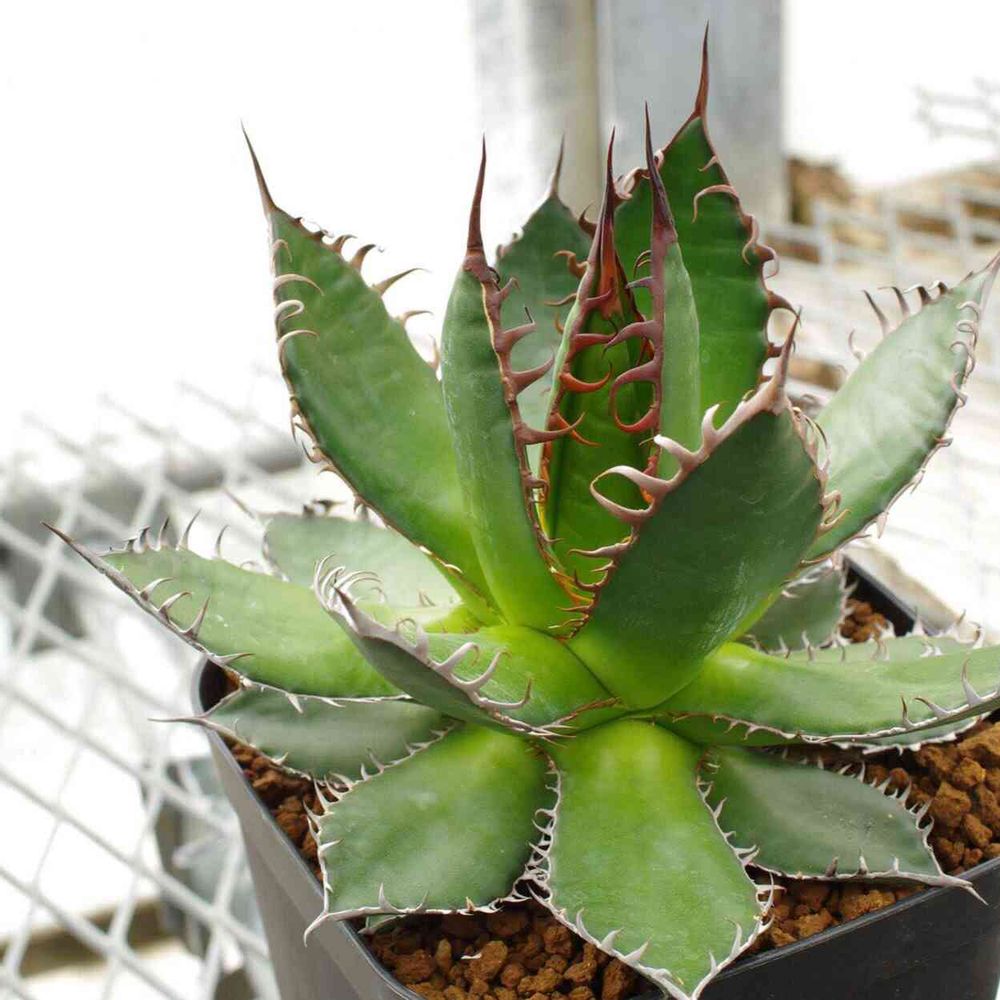 プランツジャンキーらしいコをご紹介。アガベ ホリダ様。見よ!この悪魔のような赤く凶々しいツメを!鮮やかなグリーンが元気よく明るい雰囲気なのが意外とかわいいポイントなんですが、これでブルーグレーとか斑入りの種が出てきたらどうなるのか…。