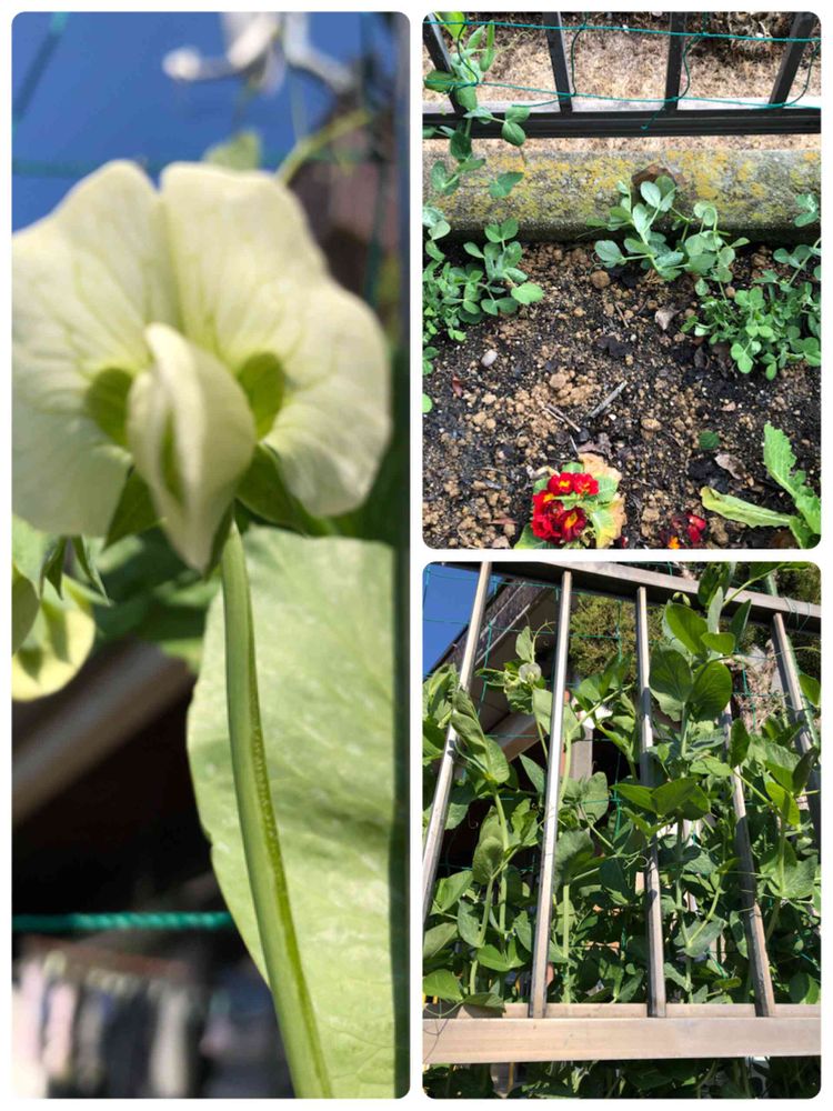 スナップえんどう。右上は、2月20日の状態。他は、なう!