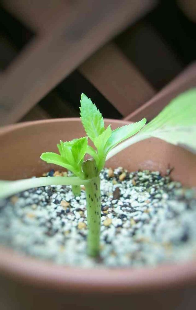 先月ご近所から頂いた切り花から根だしに挑戦。約一ヶ月でここまで成長~╭( ・ㅂ・)و ̑̑