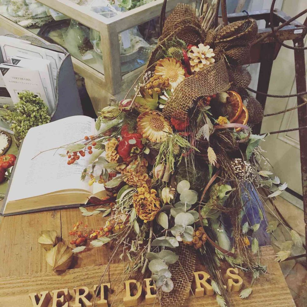 Today's lesson!! ドライフラワーでハロウィンスワッグ作ってきました~😆🎃✨