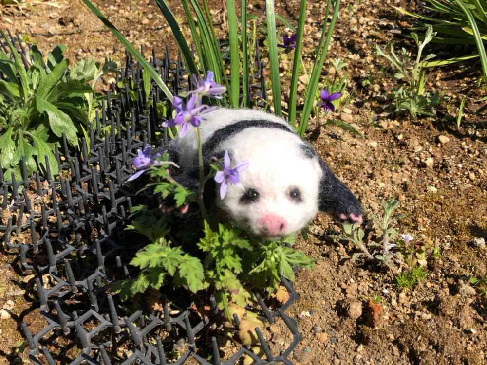 シャンシャン、お花を飾っているみたいでしょ?🐼