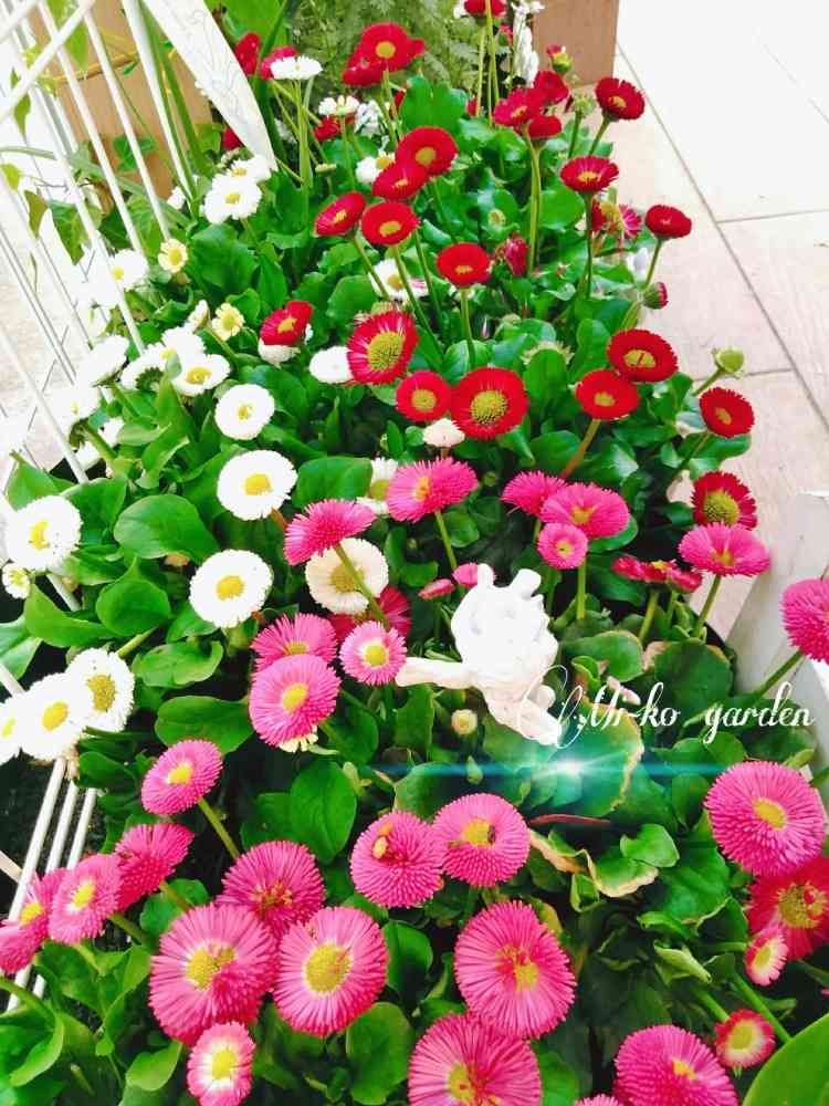 三色のデージー、モリモリでカラフル、とっても可愛いですね😊💕💕