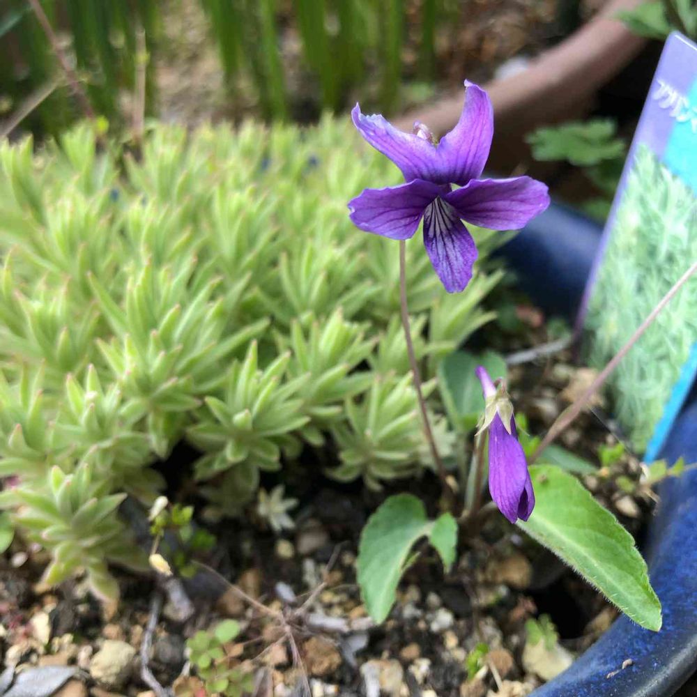 セダムの中からひょっこりスミレが🌼💕