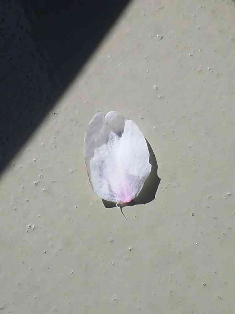 眩しい陽光に映えた薄桃色をした一片の桜の花弁が、風に舞って窓際に辿り着きました🌸✴️