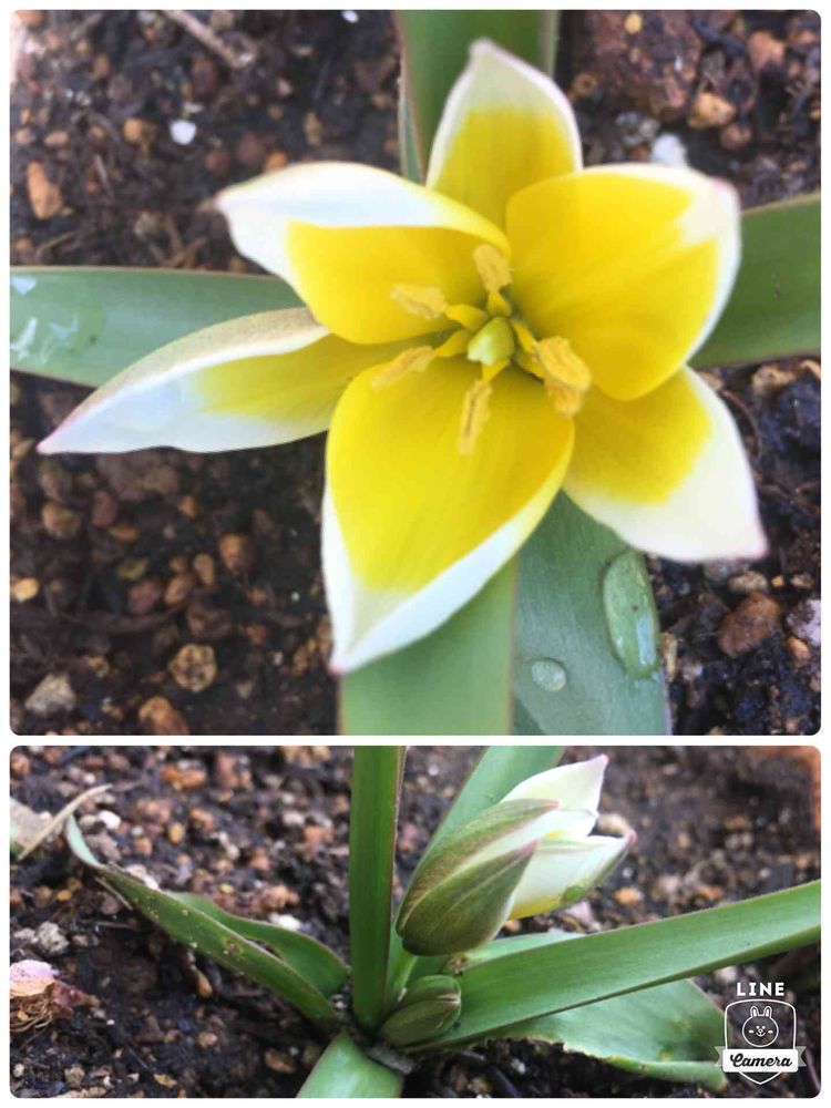 このキャッチに惹かれ🤗秋に植えた原種系ミニチューリップ🌷の球根🌷今日開花しました🤗