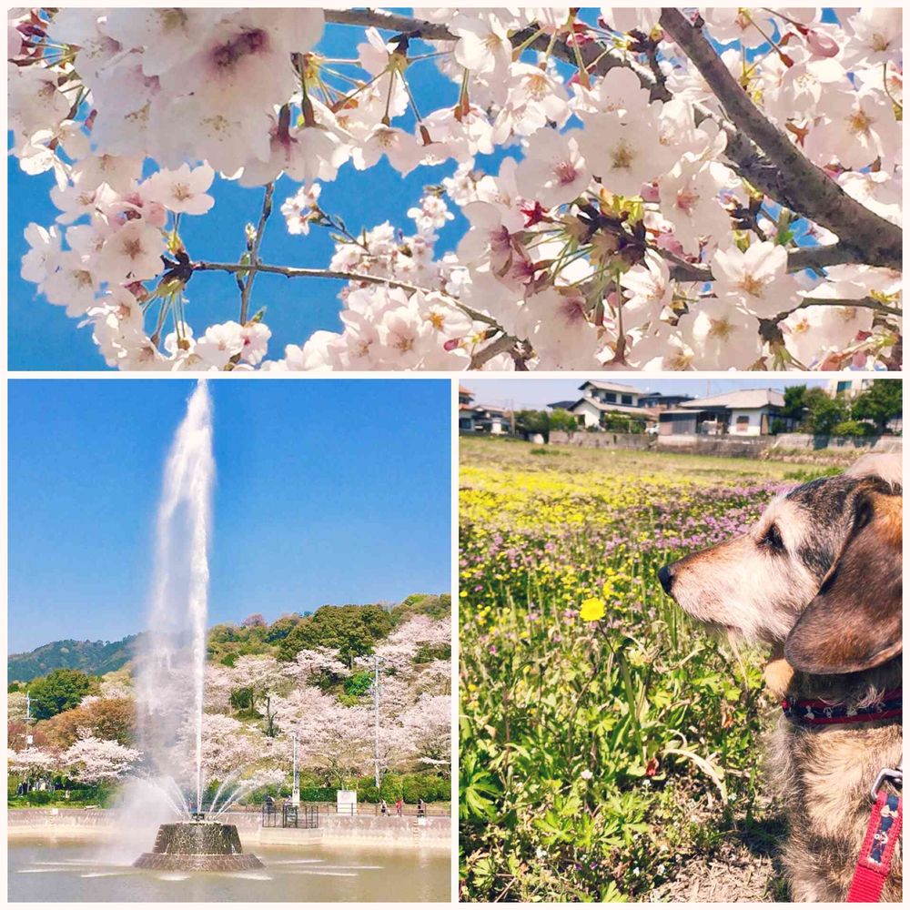花見🌸もそろそろ終わりかな、と甘木方面まで行きました😊桜と青空、最高の組み合わせ💕💕