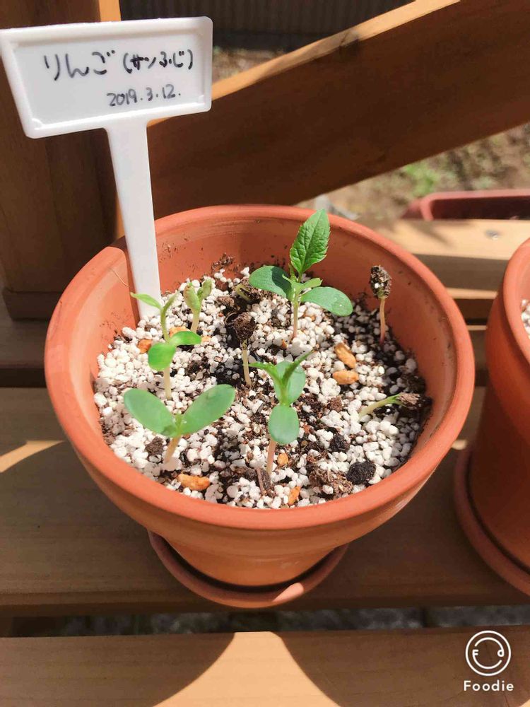 リンゴ、大きい種6つ蒔いたのですが、そういえば小さいやつもポチポチ刺しておいたのでした😅