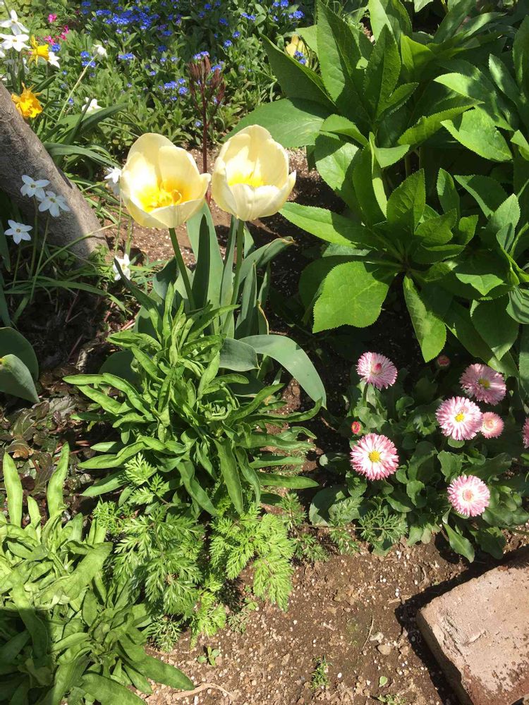 黄色いチューリップは昨年植えぱなしの球根で今年も咲いてくれました。💛💛