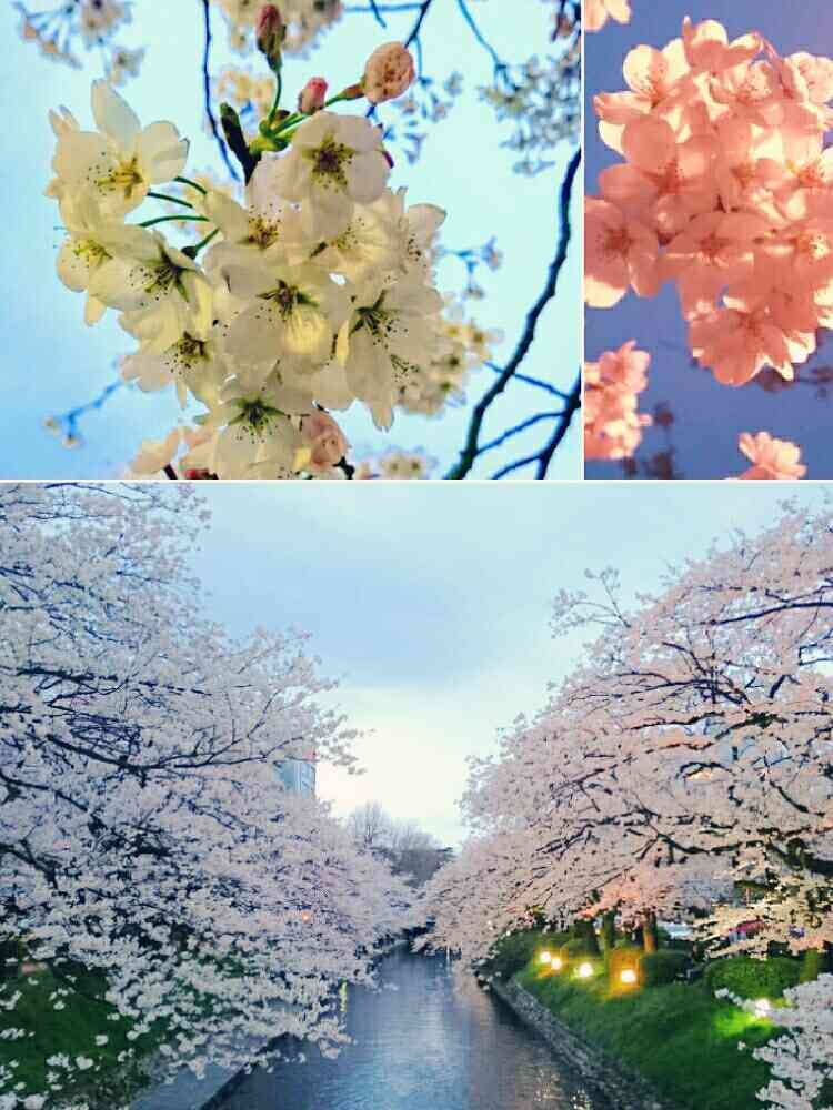 でもコケが付いたサクラの幹からの開花、妖艶だよー。露店商も終わった22時以降がすっごくキレイ❤松川が鏡面になってサクラが倍になる!