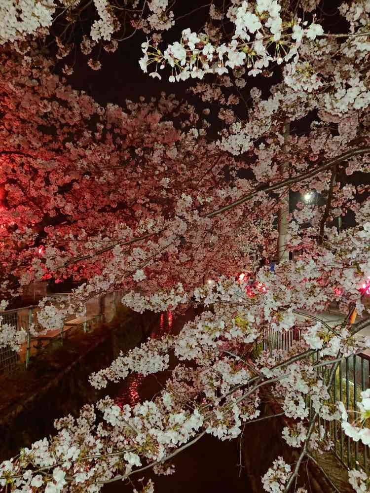 夜桜見に家の近くの桜並木散策に行って来ました🌸ほぼ満開🌸🌸