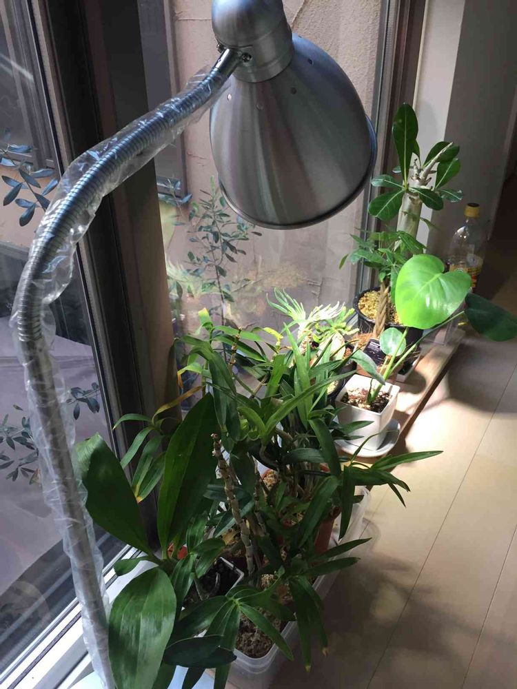 IKEAのランプが届いたと思ったら、LEDが装着されて、早速根塊達が照らされてる。