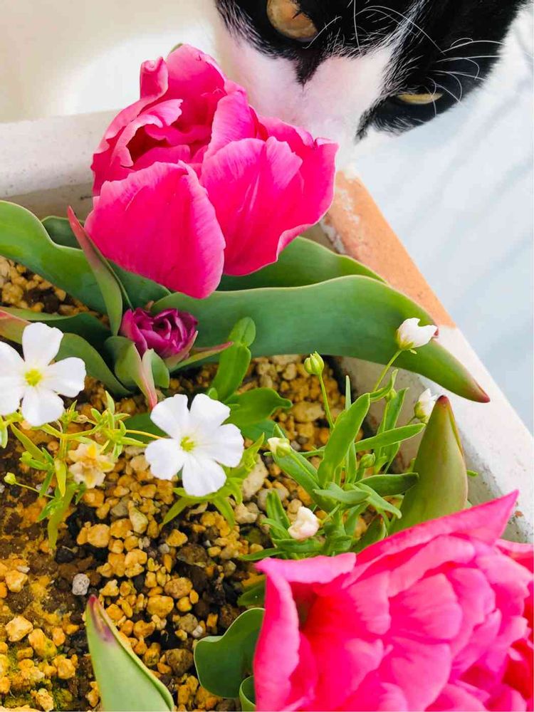 チューリップより目立ってる🐈🌷.*