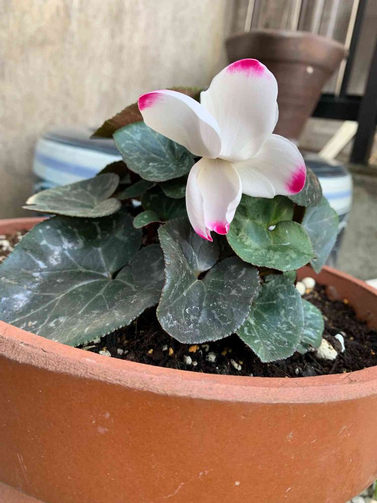 実母に年末プレゼントするシクラメンの花、咲き終わると持ち帰って、ほったらかし。
