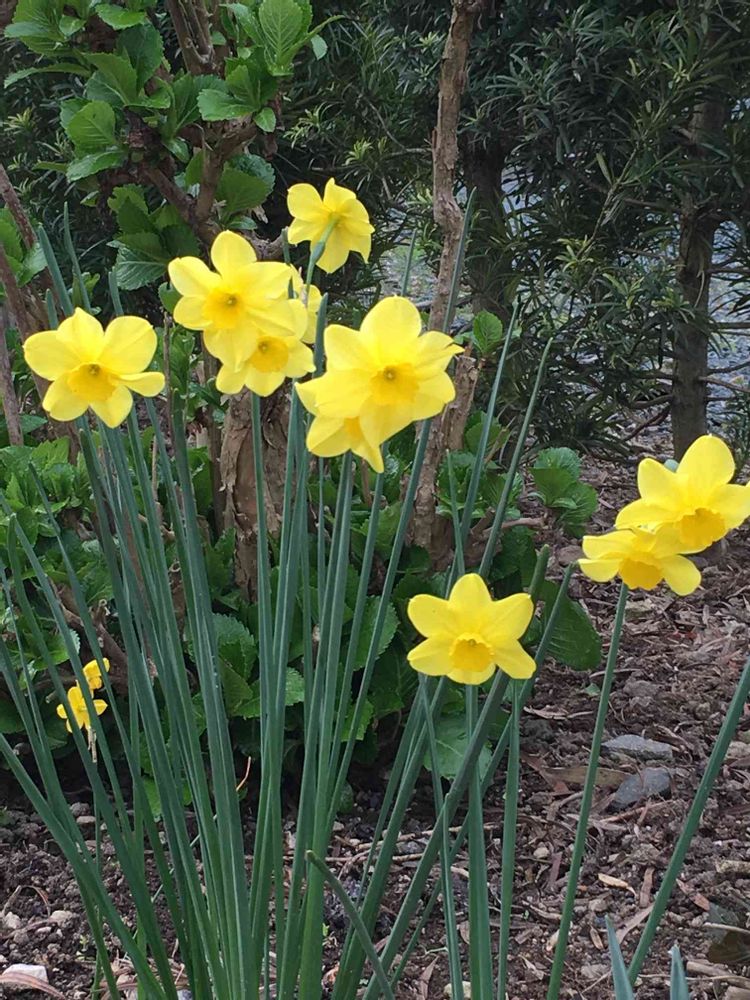 房咲きの黄水仙が咲きました(3/25撮影)。花径は大きく、5〜6㎝あります。前出の房咲き水仙ゼラニウムの黄色版のようです😊💕。香り水仙でもあります☺️💕💕。