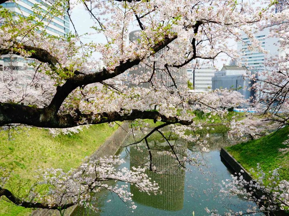 息子の勤務する会社のそば 昨年は入社式前に同じ桜を見に来ました!月日の流れの早いこと😆✨