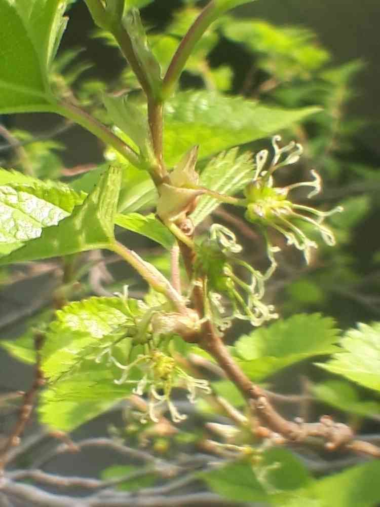 我が家のプランター植え桑の木でーす🎵花が咲きますよー、って種から育てました❗とても控えめな🏵️でした🎵夏には紫色の甘い実が頂けます🙆
