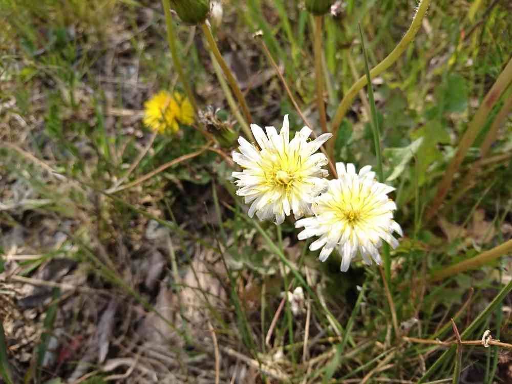 ウォーキングの途中で、白いタンポポ???見つけました❗
