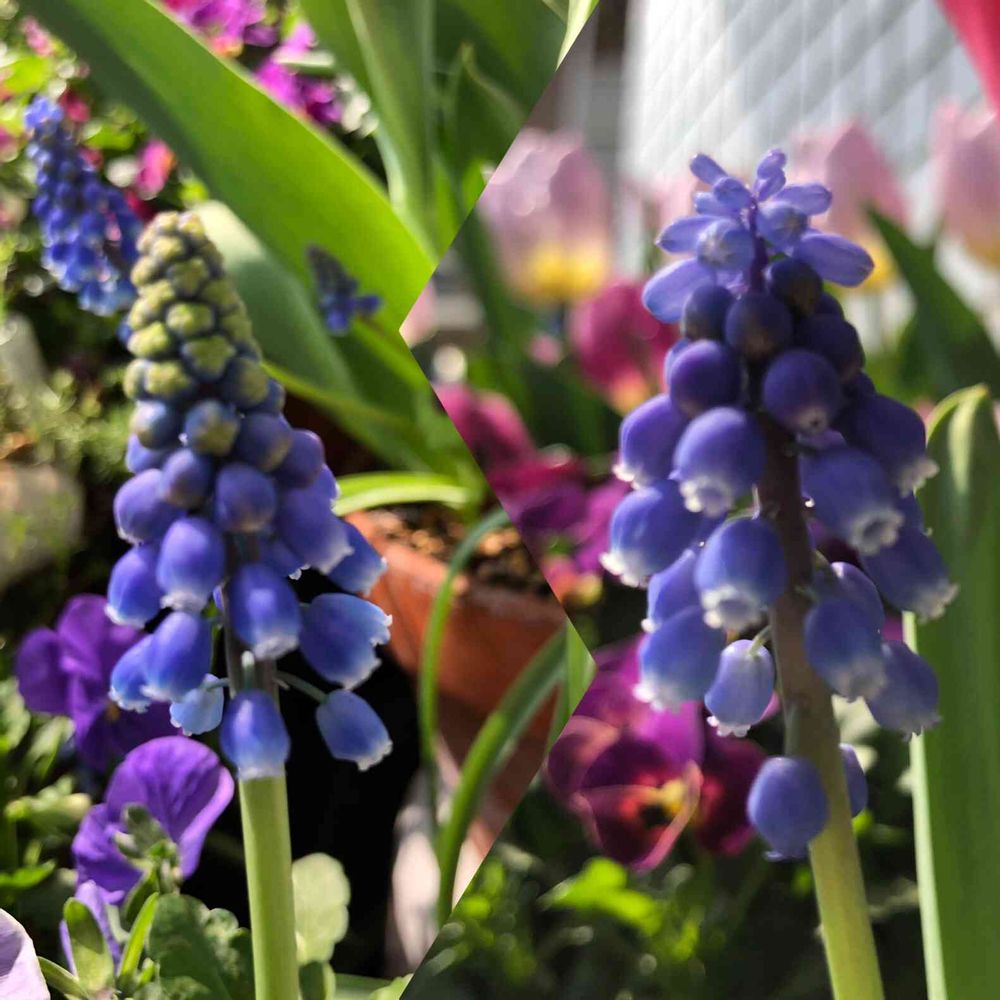 ムスカリは頭のてっぺんまで咲くのね〜。初めて知りました💜💙
