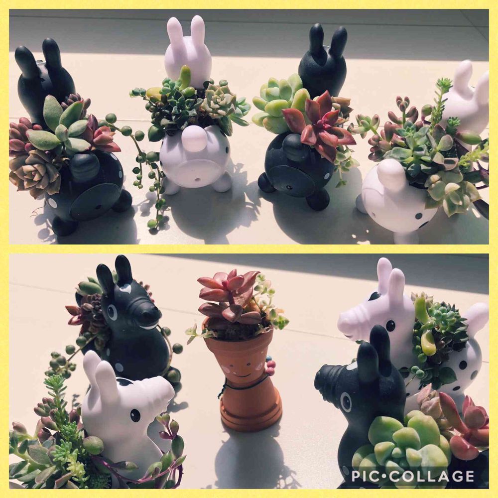これはカッターでロディさんの背中を開けて😢土→多肉ちゃん→水苔をぎゅうぎゅう詰め込んでいます🌈