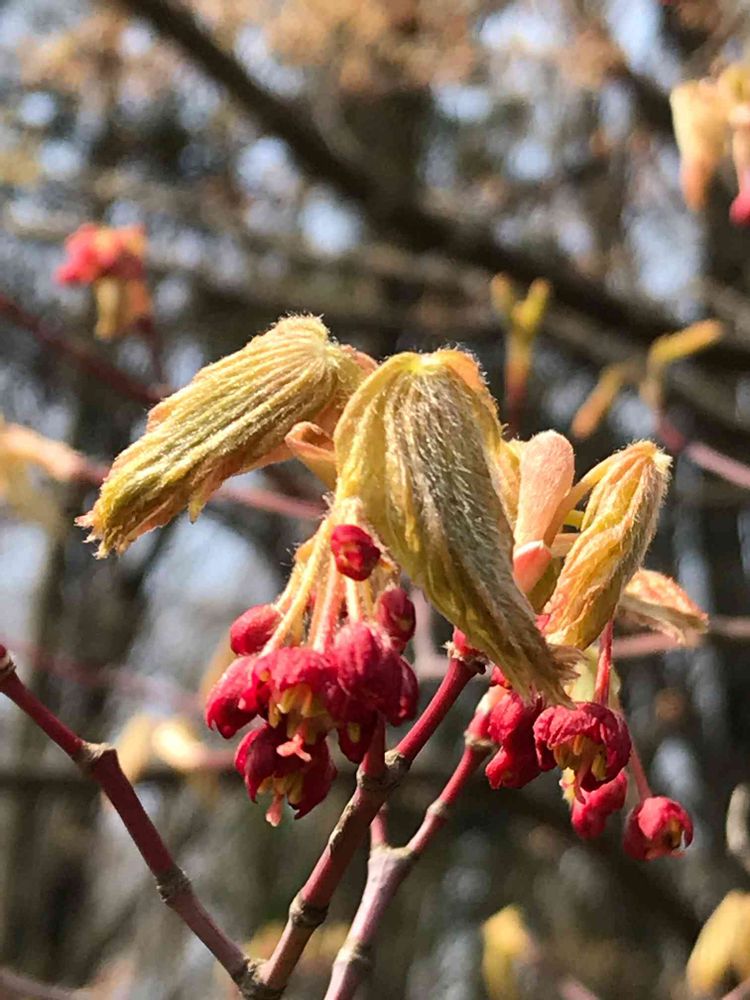 ハウチワカエデ(羽団扇楓)の芽吹きと花。・・・イイネ。🧚♀️🧚♀️🙇♂️。