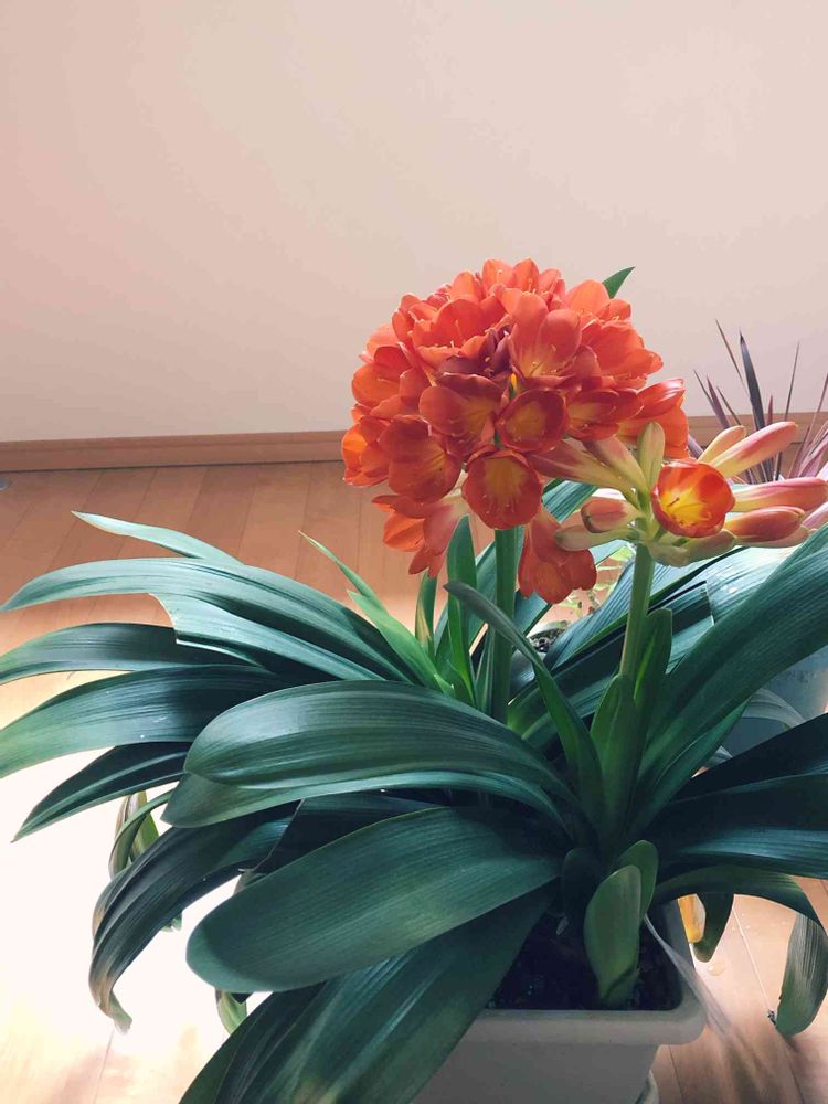 おうちのクンシランがいつのまにか満開でした。鮮やかな色のオレンジにハッとします。