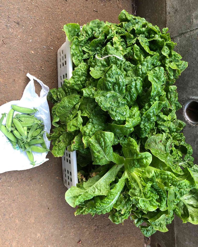 チマサンチュハンドボールくらいのが8個(去年の残り)絹さやエンドウ30個。