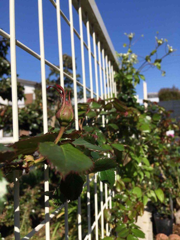 朝見たら、ピエールの蕾が出ていた。去年植えてはじめての蕾です。嬉しいな。