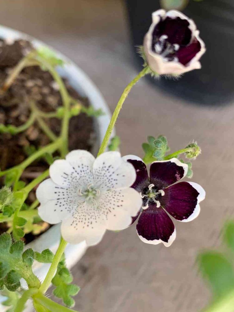 ネモフィラのスノーストームとペニーブラックではないでしょうか。違うかな?