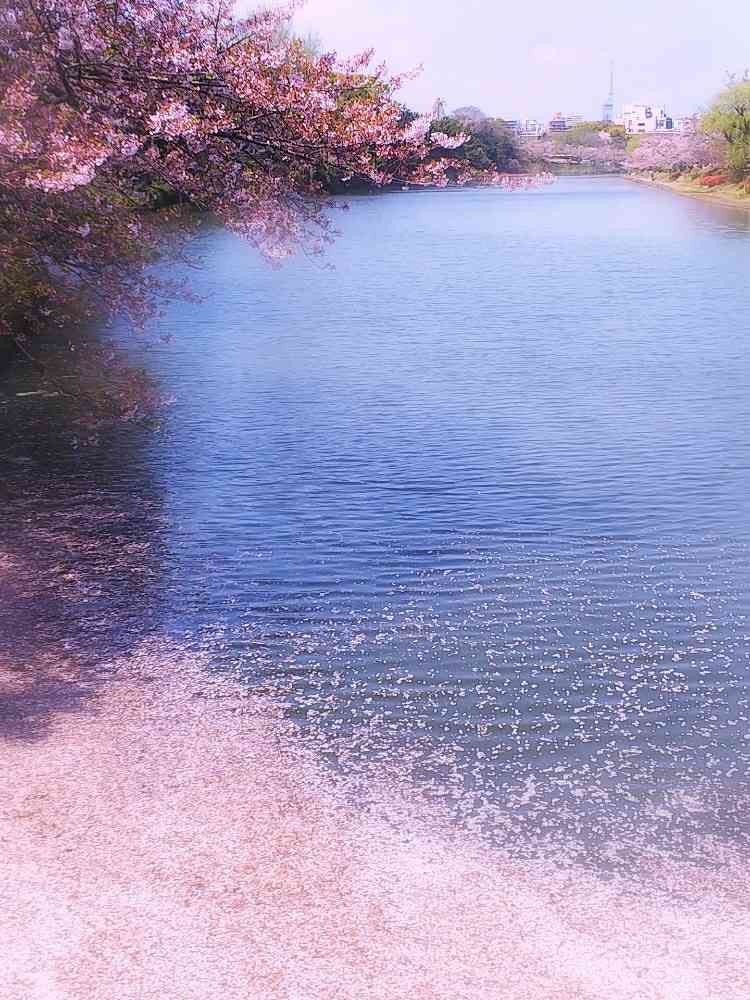 水面の桜🌸の花びらの絨毯も、風情があって良いですねー。綺麗✨✨