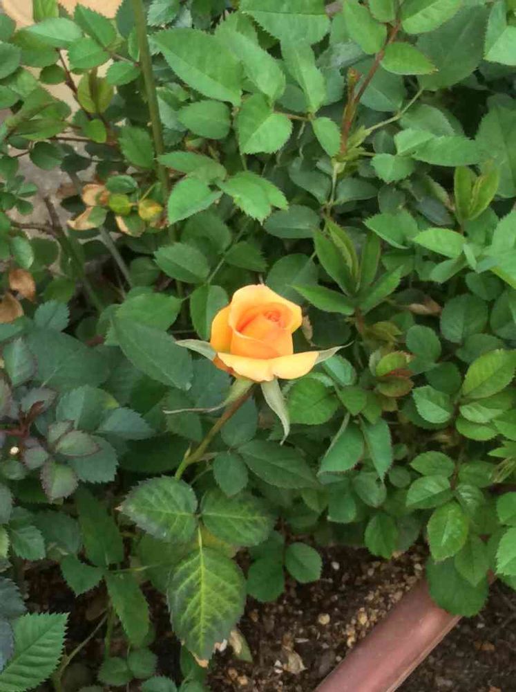 今は殆どのミニ薔薇は葉っぱだけの状態ですがたった一輪可愛く咲いてくれています。