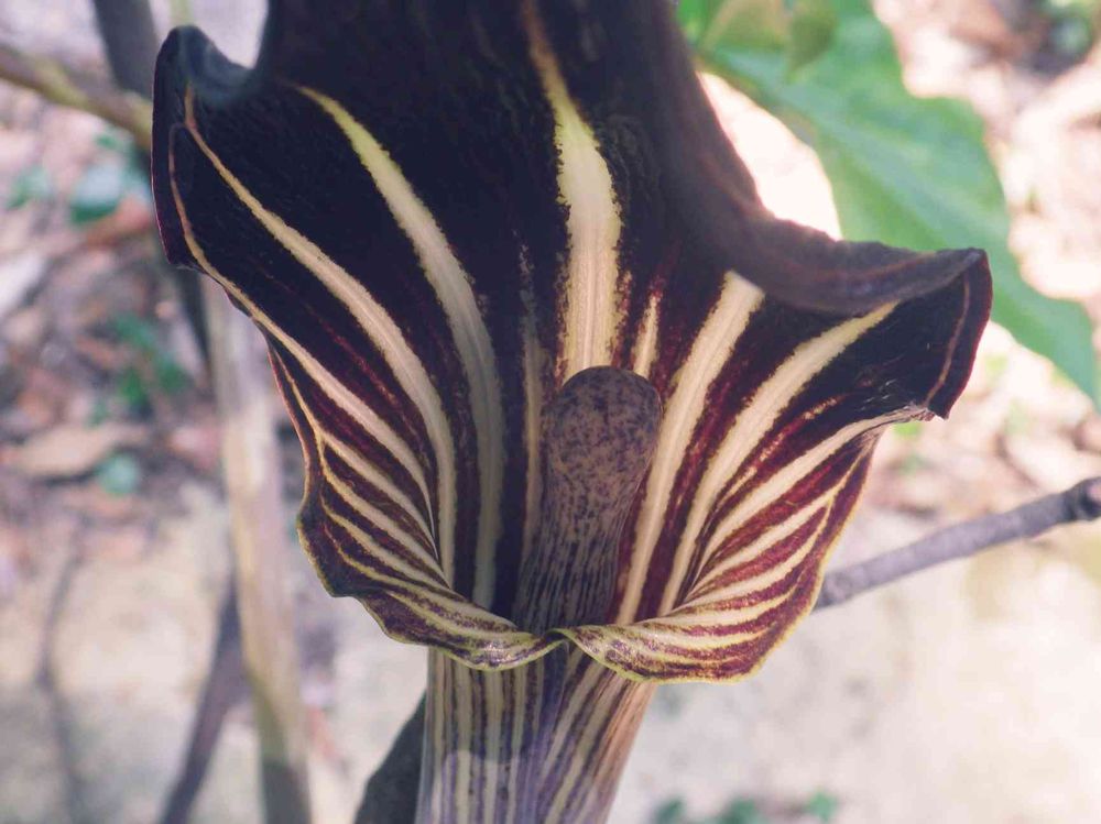 スクープ。絶滅危惧種の浦島草に遭遇。ちょっと失礼して中を拝見させて頂きます😅