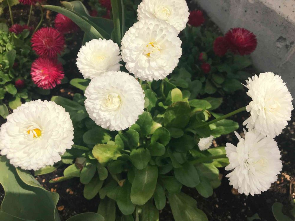 うちの小さな庭のチロリアンデージー😃ピンクに続き白も咲いてきました💖✨💖✨💖