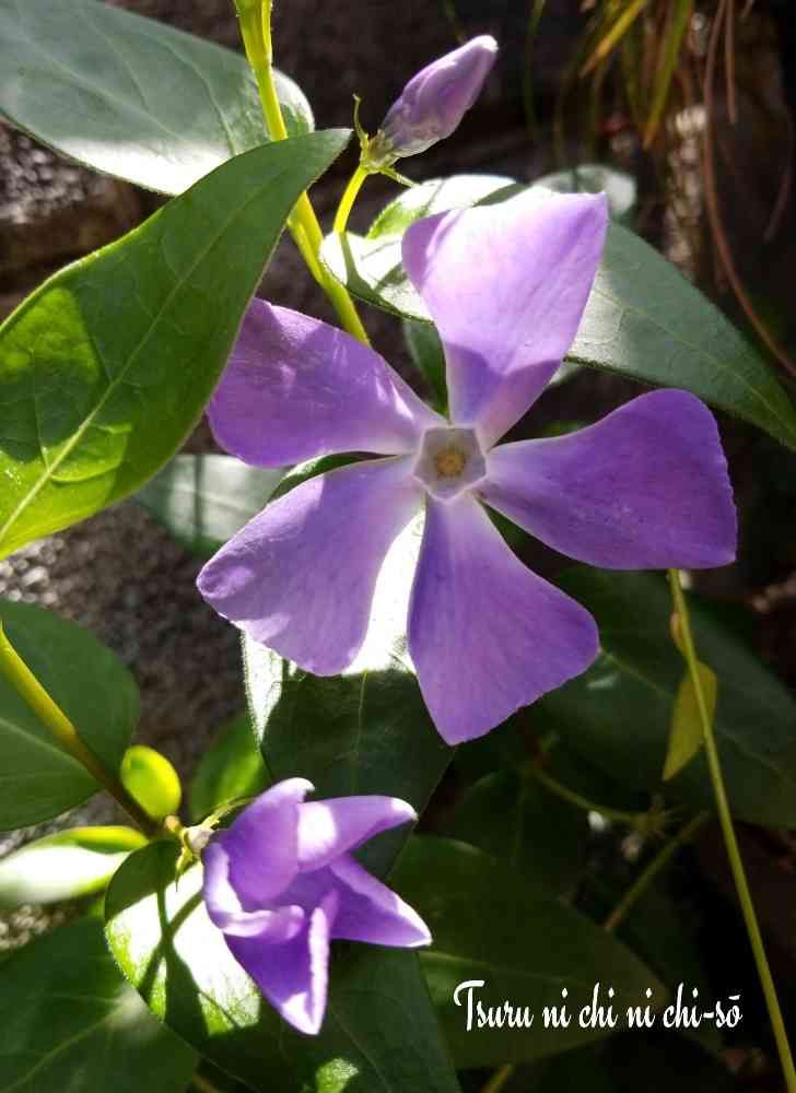 つるを色々な方向に伸ばし生長してるツルニチニチソウ