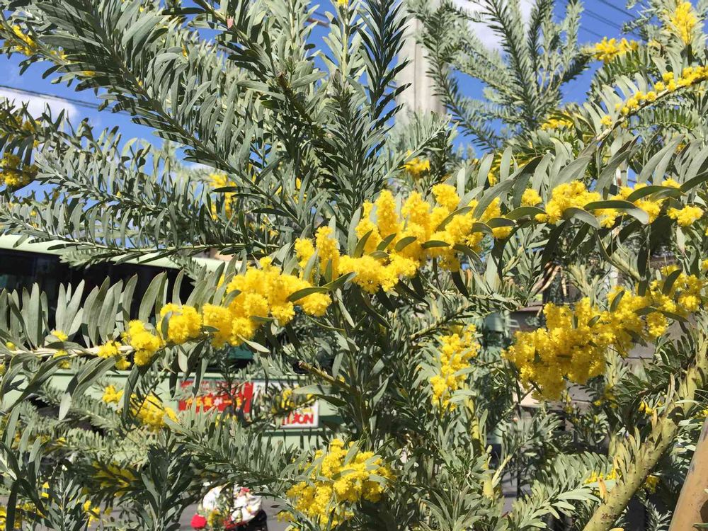 アカシアですね。ありがとうございます。ミモザかと思いましたが葉が違うようです。