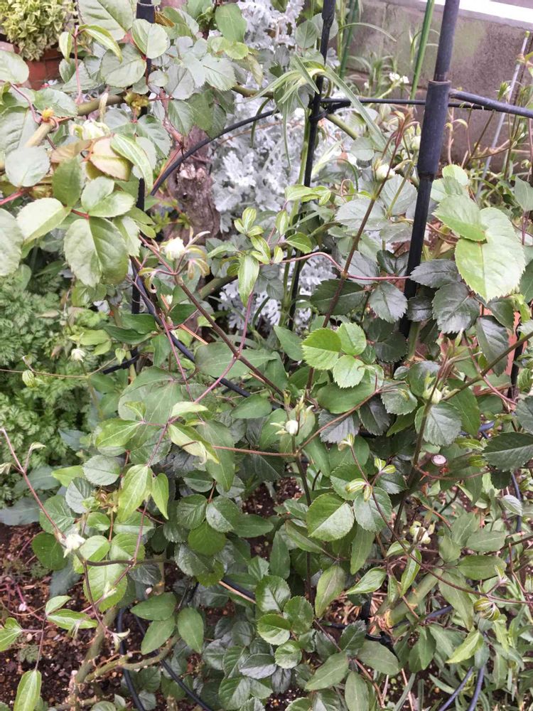 天塩は沢山蕾つけルージュさんはいくつかの蕾をつけました。地植えは初めての薔薇さん。
