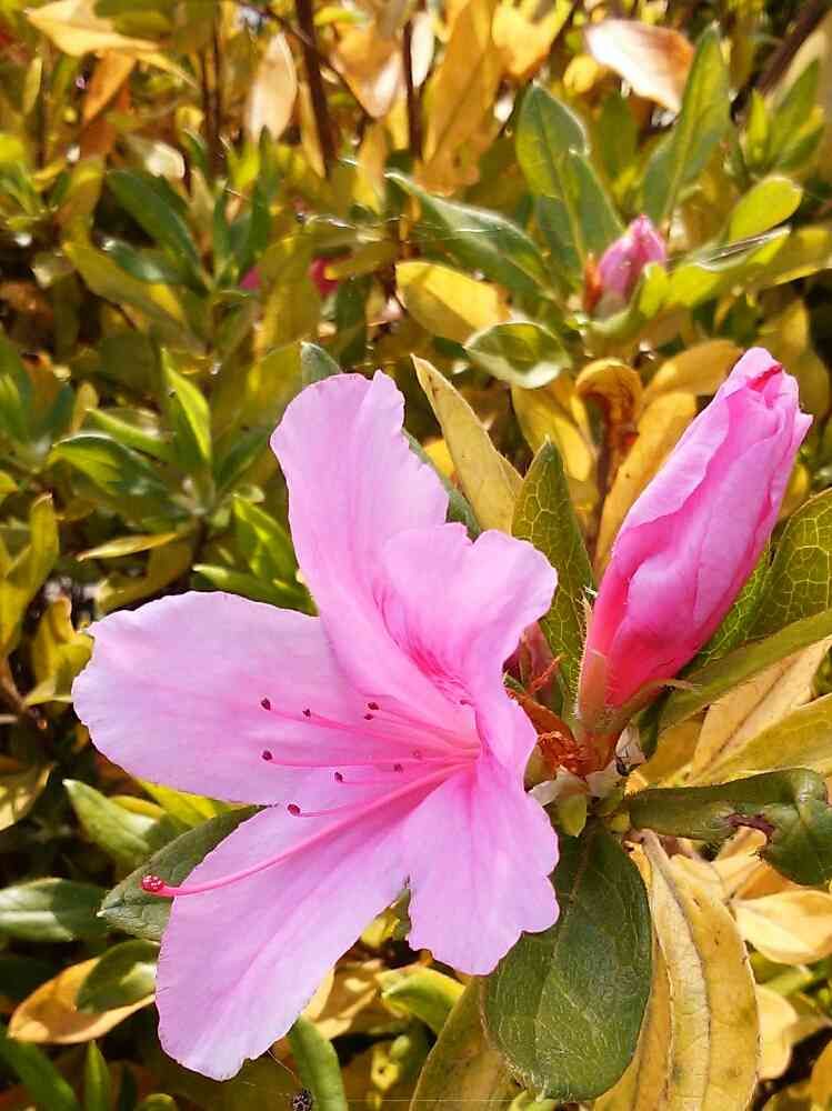 今年も、道路の植え込みのツツジのピンク色の花場所により咲き出してました