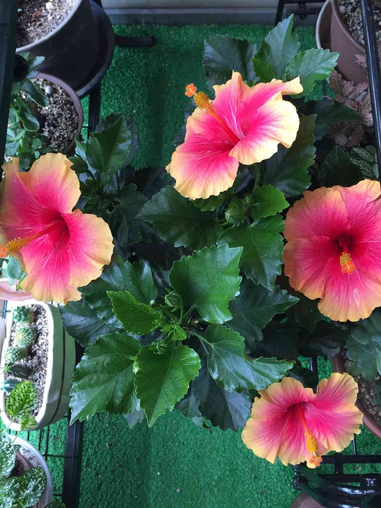 ハイビスカス ミセスユミさん、まさかの4個開花❣️