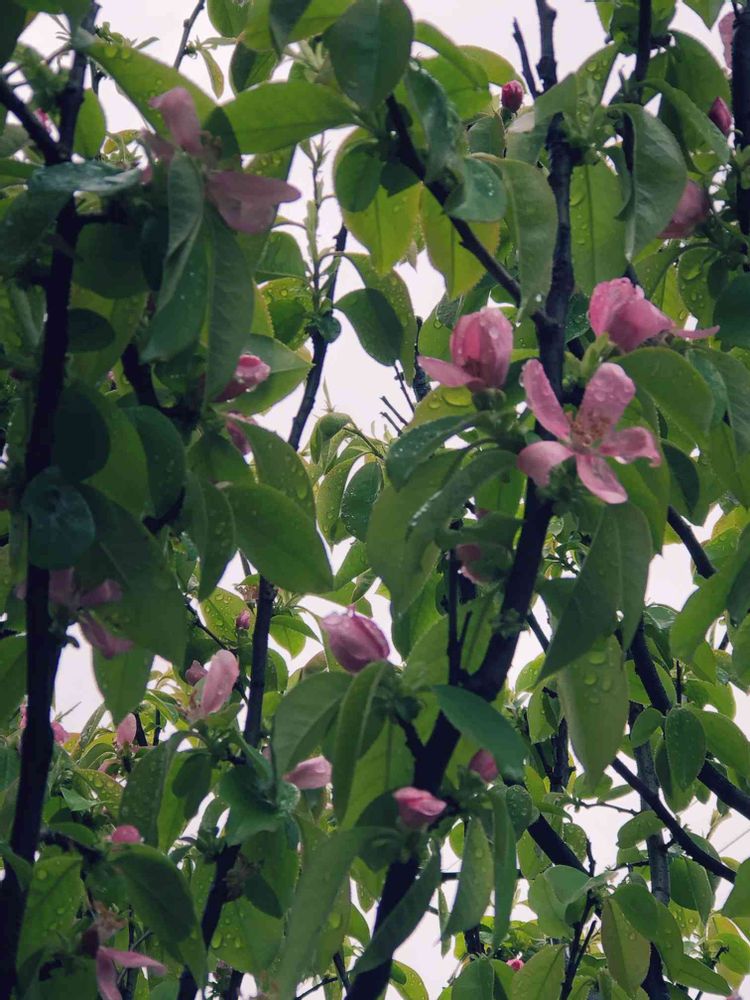 梨の花とかは🍎の花みたいに白いイメージがあったけど、花梨はピンクなんだ✨