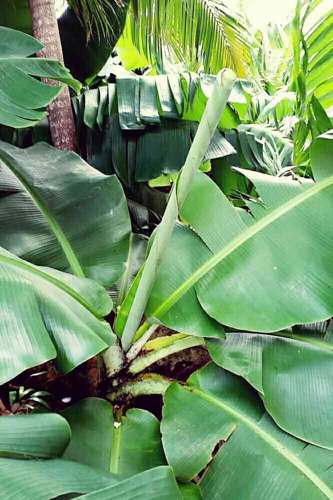 ウチのお隣さん、バナナ育ててるんだけど、新しい葉っぱこんな感じで、巻いてます🌀🌀
