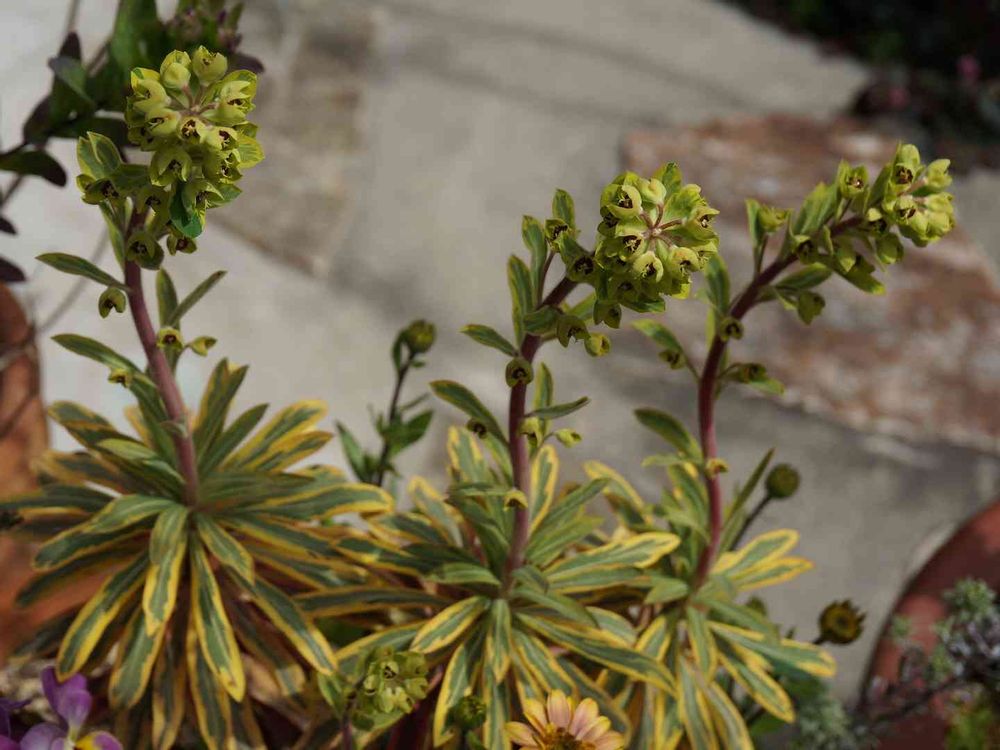 昨年お迎えしたユーフォルビア ゴールデンレインボーに花が咲きました🌼