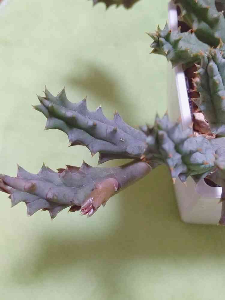 変化が全く感じられなくて死んではいないな…?レベルだったガガイモーズのフェルニア ヒストリクスにツヤっとした新芽っぽいものを発見!