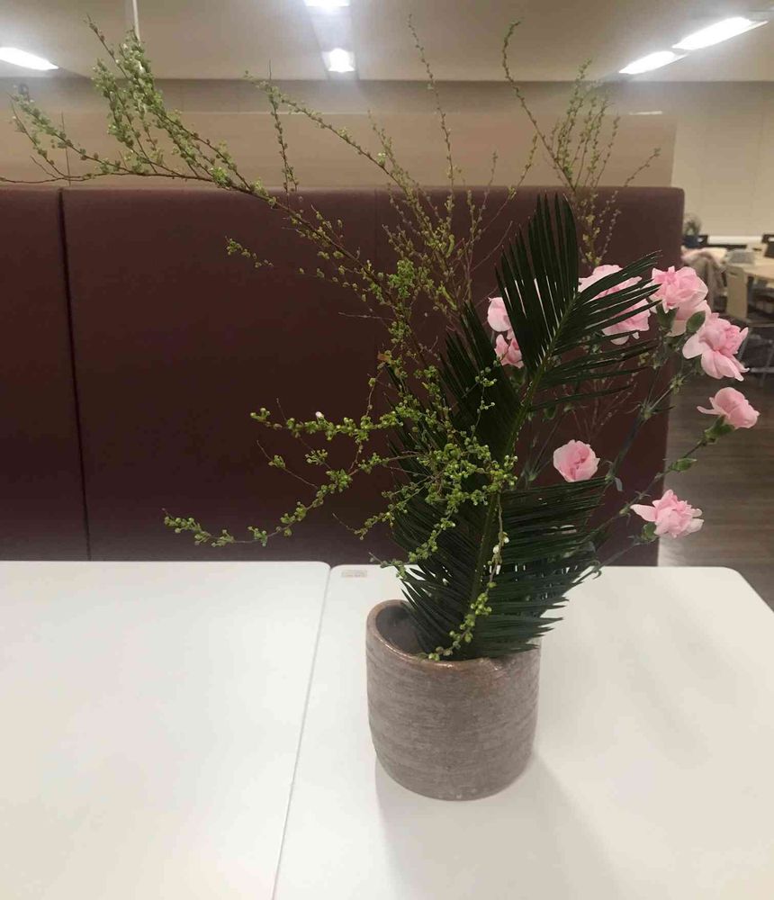 本日の華道部お稽古。 足元がバラバラになってしまい、先生にかなり手を入れていただきました😅