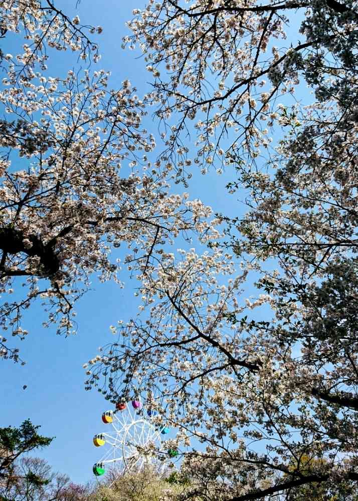 桜を覗いたら目の視線の先に観覧車🎡が…😄