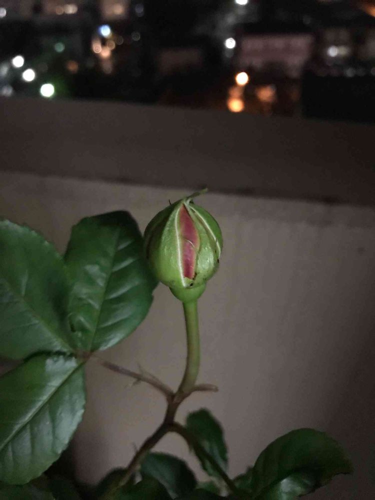 蕾が色づいてますね🌹💕どうみても赤くなりそうですよね(о´∀`о)何色が咲くのか楽しみです🎶