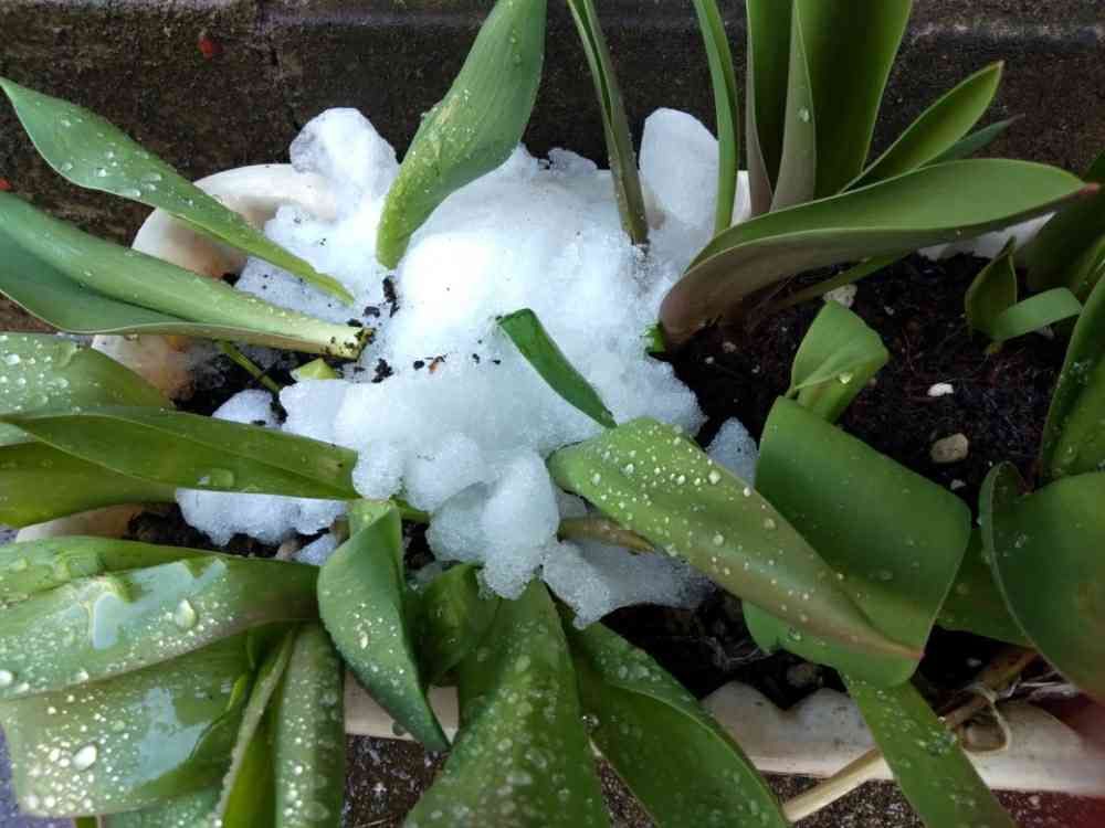 屋根から落ちた雪が水分を含んだシャーベット状だったみたいで〜=3チューリップ見た瞬間、痛かったよね〜、ごめんね〜って(´;ω;`)ウッ…
