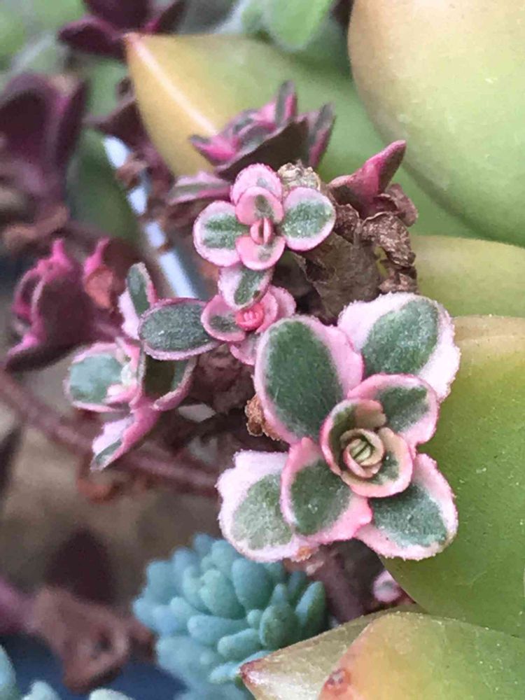 これは、寄せ植えの中のトリカラーです〜乾燥気味が良いと書いてあるのを見たので、今はセダム4種の中のトリカラーには水やりを少なめにしています🤔