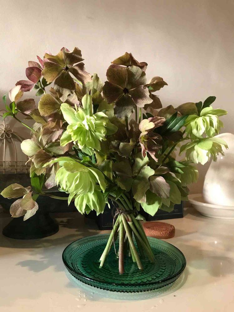 クリスマスローズの花を✂️した。結構たくさんあったので、苦手なスパイラルブーケの練習してみた、、、